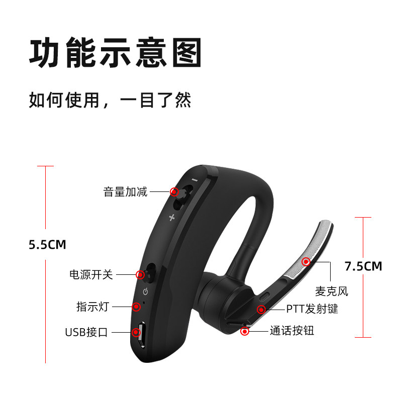 Walkie-talkie bluetooth headset earhook type walkie-talkie headset cable accessories universal adapter 5r Baofeng 888s