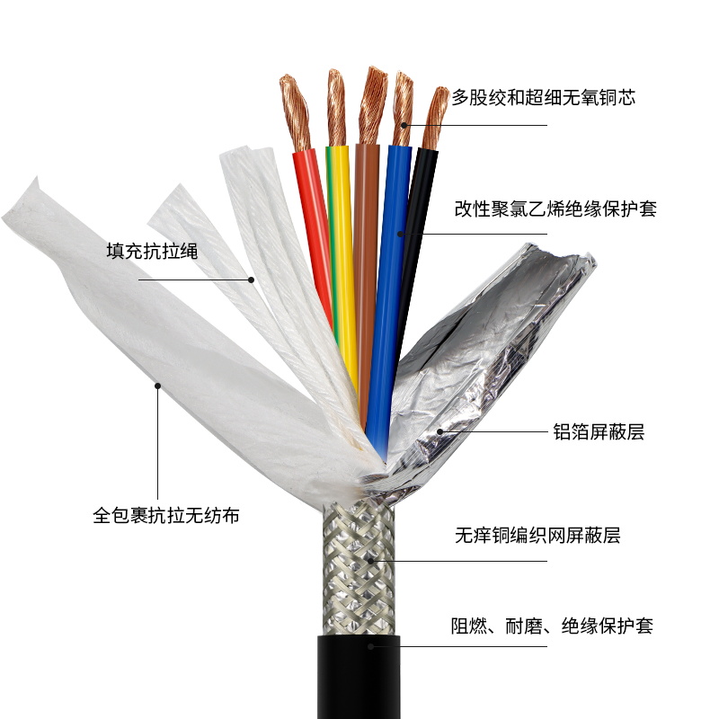 High flexible shielding 5 cores 0 2 square 100 meters outer diameter 6 high flexible shielding 5 cores 0 3 square 100 meters outer diameter 6 8 high flexible shielding 5 cores 0 5 square 100 meters outer diameter 7 4 high flexibility