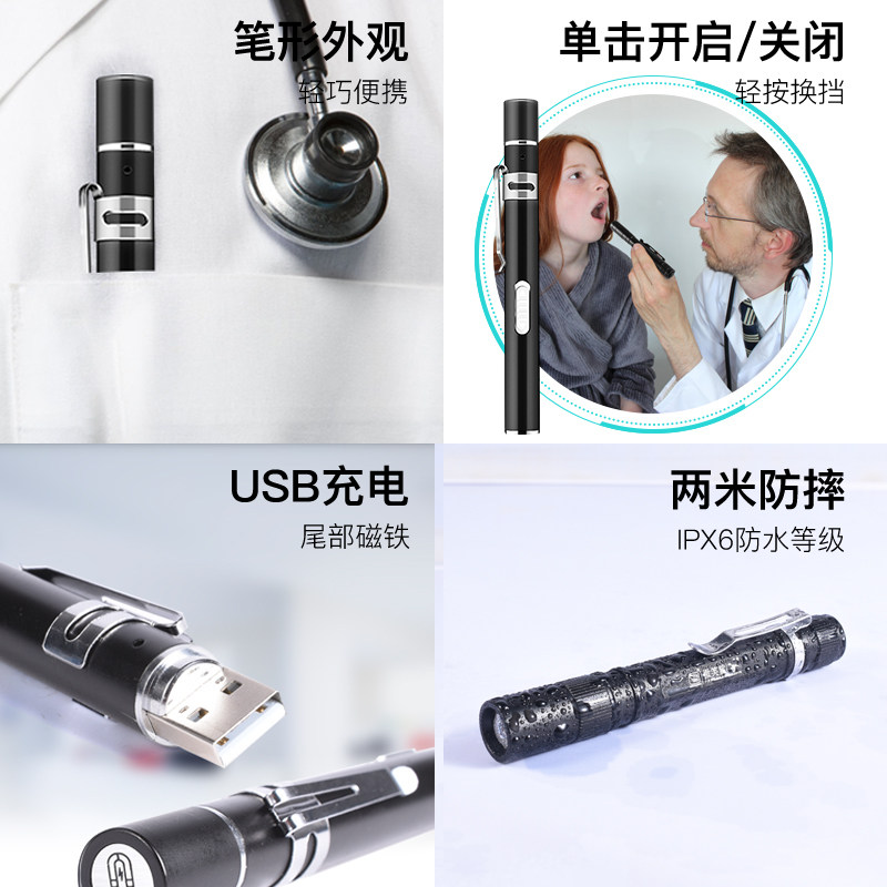 Medical Flashlight Doctor Nurse Charged Small Oral Examination Light Kindergarten Morning Inspection Ear Nose and throat Section pupil pen eye