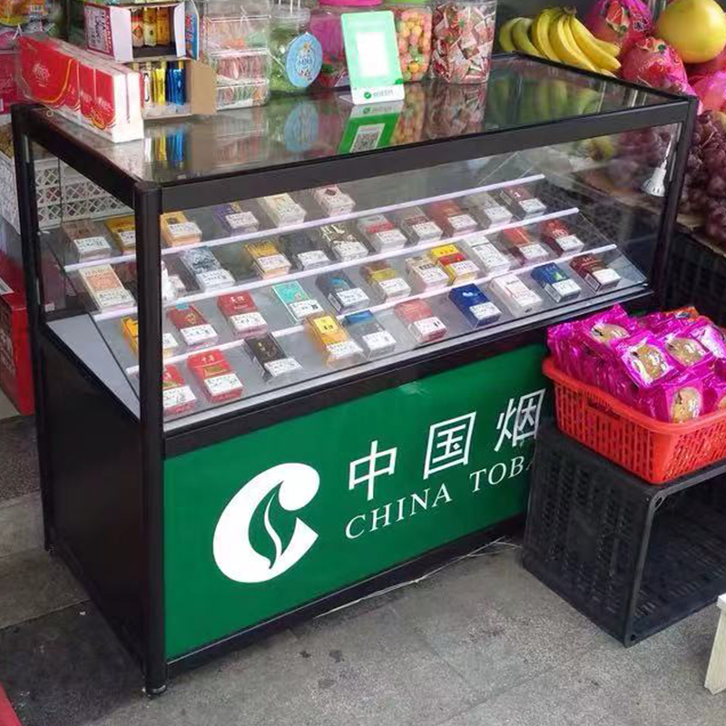 Tobacco monopoly cabinet supermarket selling cigarette cabinet tempered glass smoke cabinet with door lock display cabinet slope cigarette counter