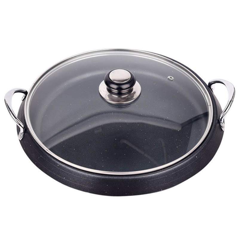 Korean-style hot pot outdoor household barbecue tray cassette stove smokeless non-stick roasting pan army hot pot induction cooker round roasting pan