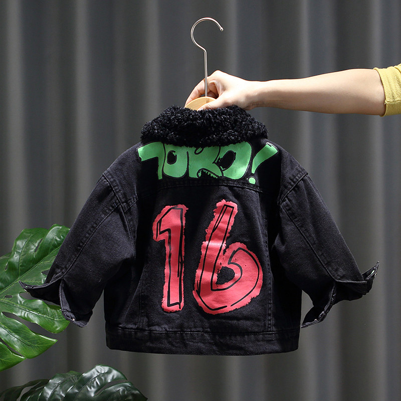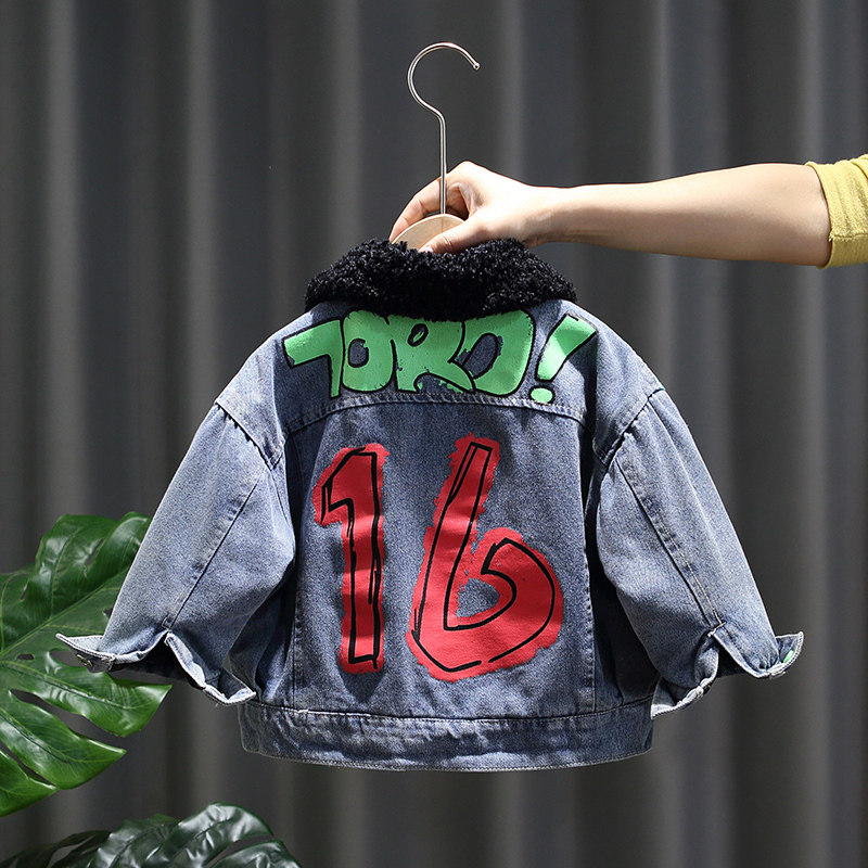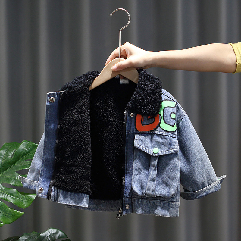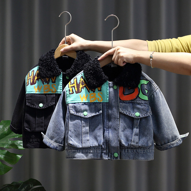 Boys' denim jacket plus fleece 2022 new children's thickened jacket boy 3 autumn and winter clothes 5 babies 6 children 7 years old