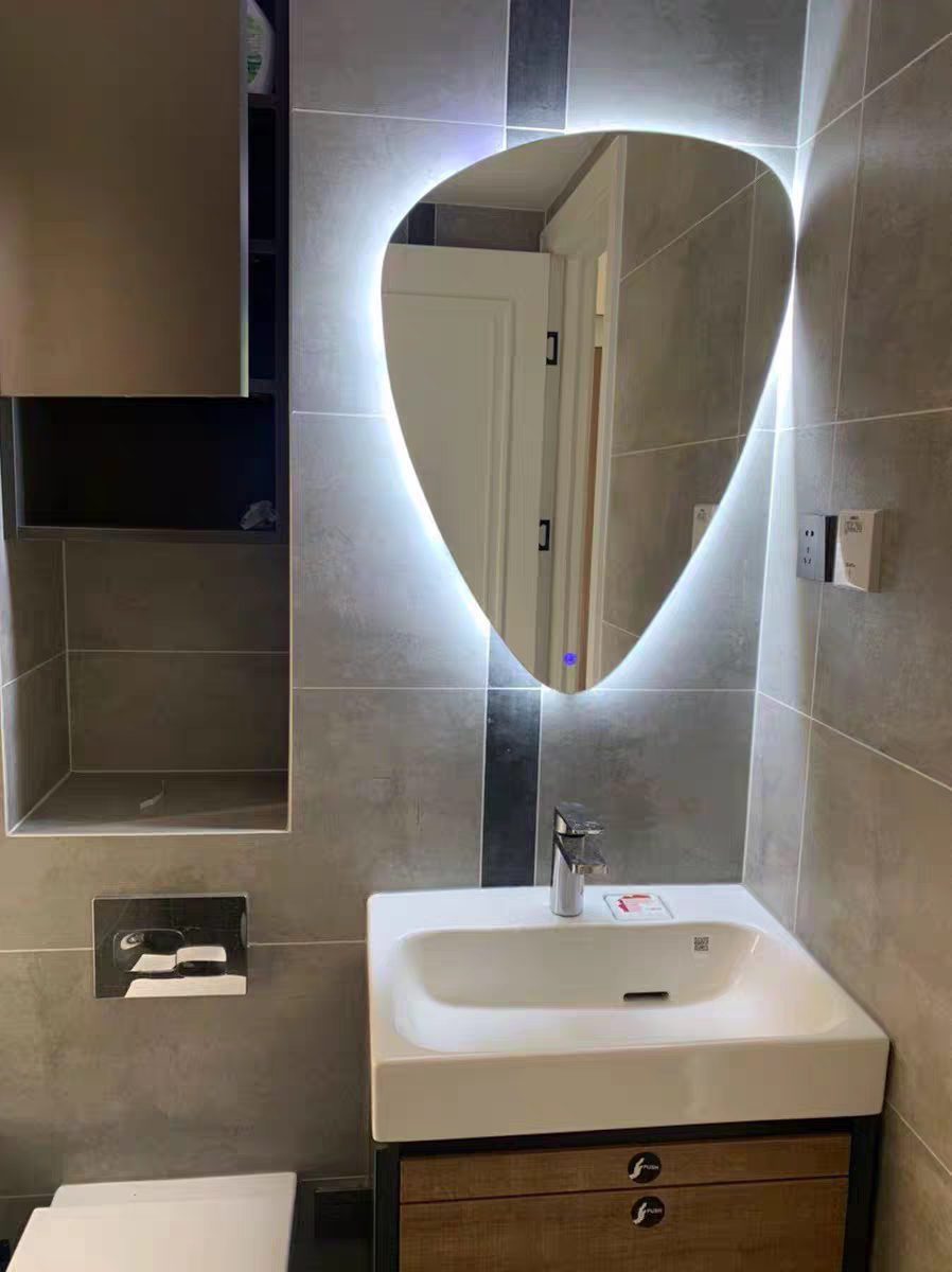 Nordic Borderless Hanging Mirror Drop-Shaped Dressing Room Luminous Irregular Mirror Touch LED Intelligent Bathroom Mirror