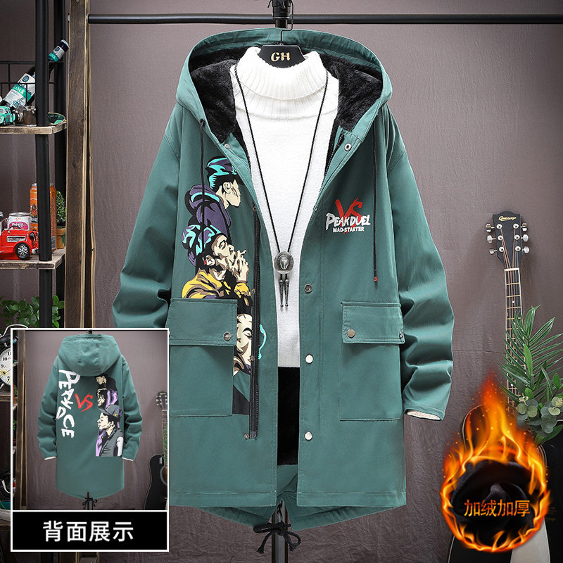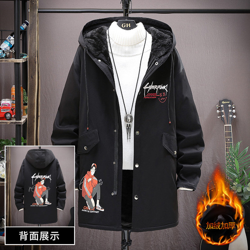 Male Great Boy Autumn Winter Plus Suede Jacket Medium Long Version Cotton Clothes Fat Boy Thickened Pie Overcomes Loose Cotton Padded Jacket GAS TIDE MEN'S CLOTHING