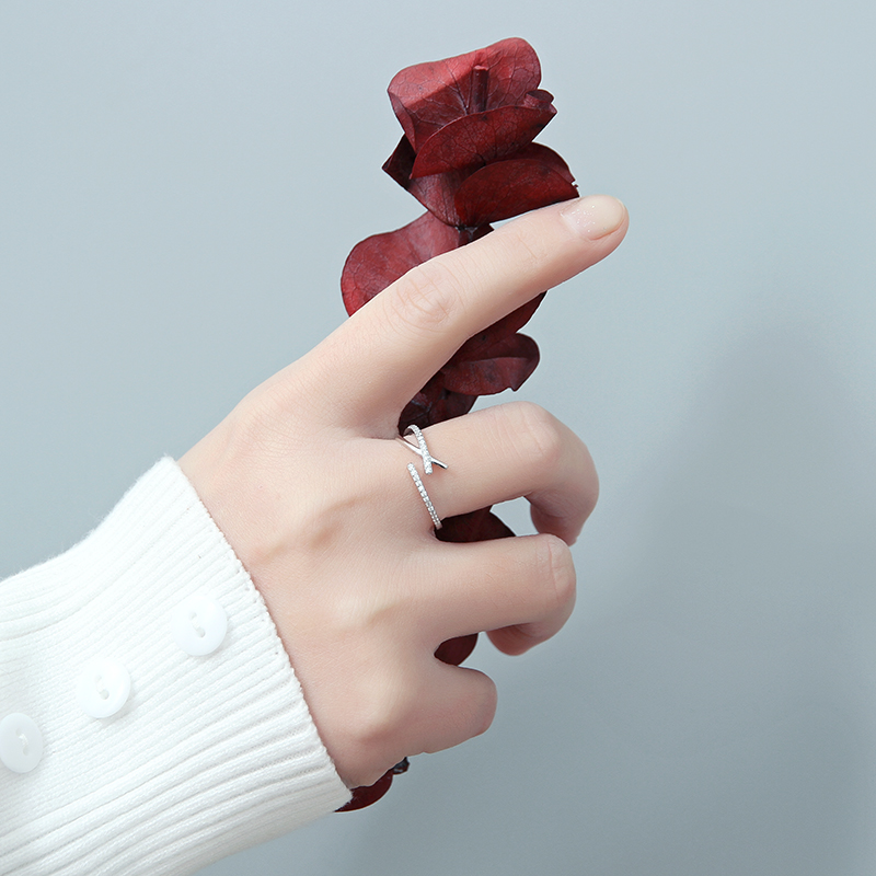 Sterling silver ring women's cross opening ring exquisite light luxury high-end index finger ring net red fashion personality ins trend