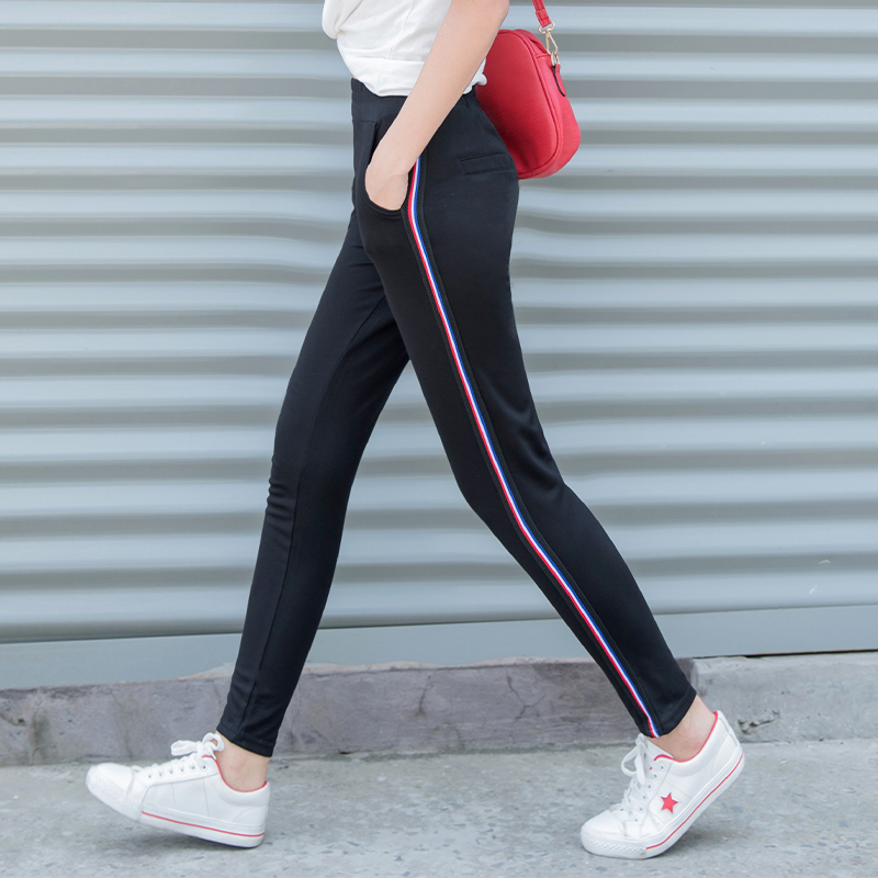 Colored strips of long pants-Black in black color