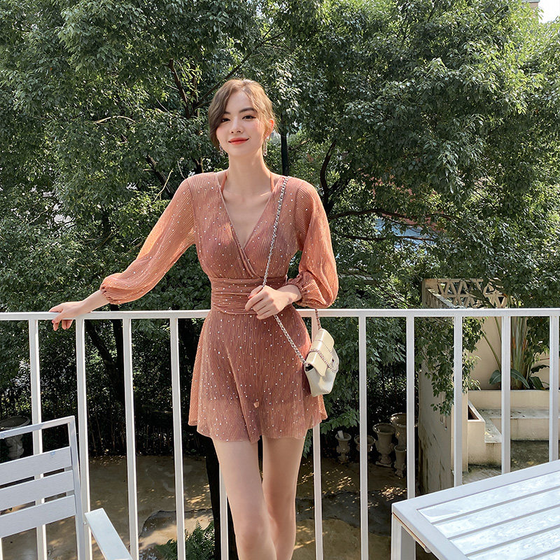 One-piece swimsuit Women's steel support small chest gathered to soak in hot springs Korea ins wind cover belly thin skirt net red swimsuit