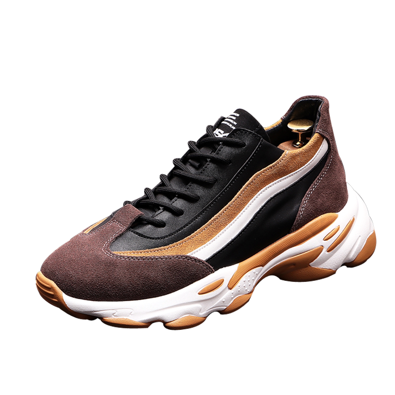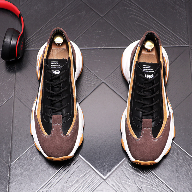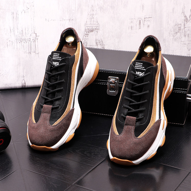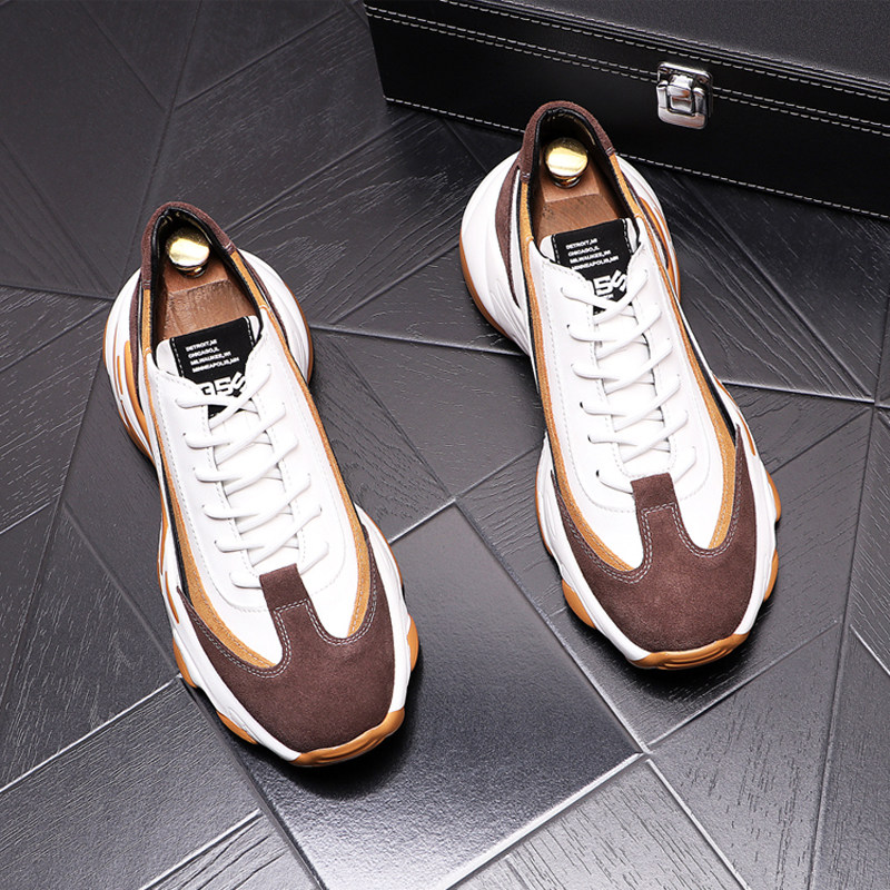 Genuine Leather Men Shoes Casual Shoes Tide Cards Old Daddy Shoes Personality Thick Bottom Sneakers Fashion Splicing Inner Heightening Running Shoes