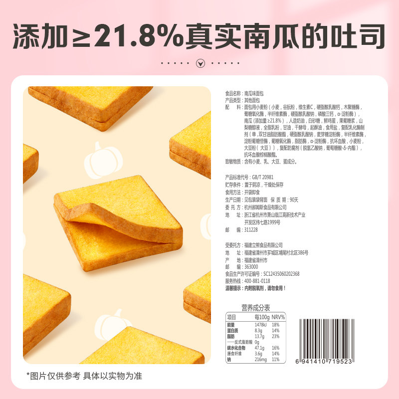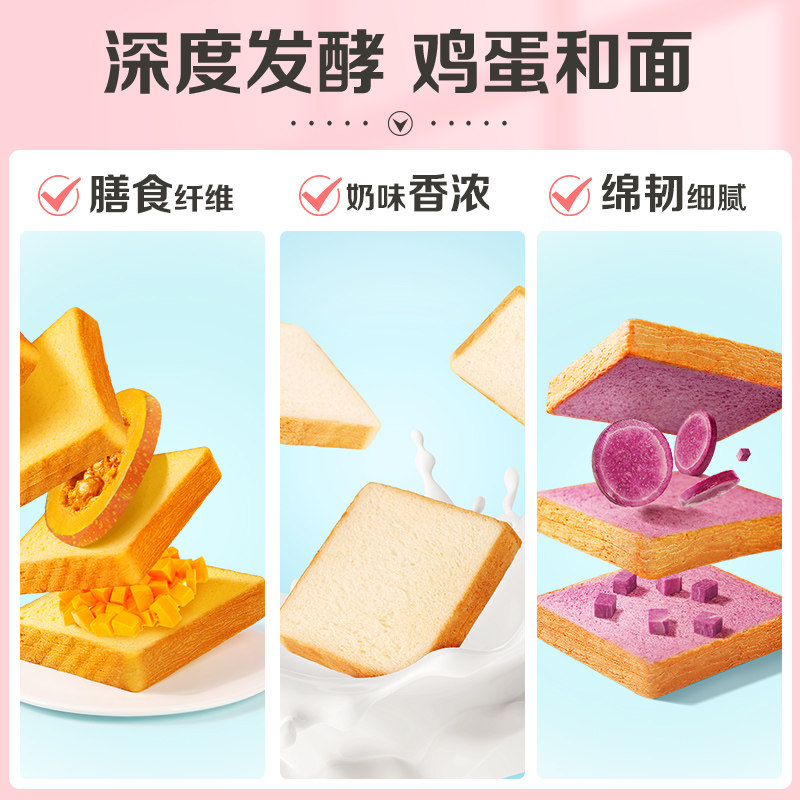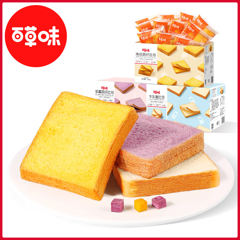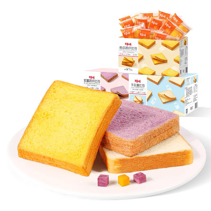 (Spot) Pumpkin Vegetable Fiber Toast 500g (Spot) Purple Potato Vegetable Fiber Toast 500g (Spot) Milk Tender Toast 500g