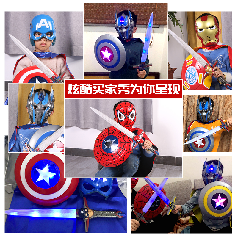 Spider Steel Man Children Toy Sword Boy Treasure Sword Shining Mask Shield Soldier Knife Sword Dance Performance Props