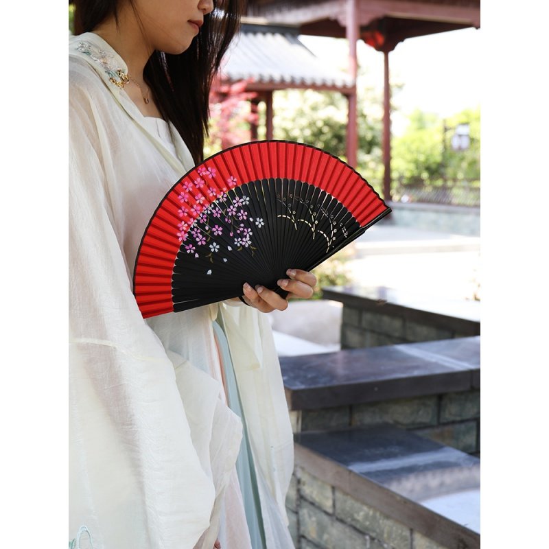 Bundy fan Folding fan bar Chinese style ancient style portable women's dance Hanfu Small ancient style Cherry blossom fan Portable