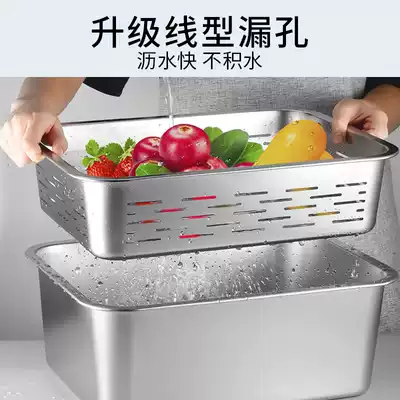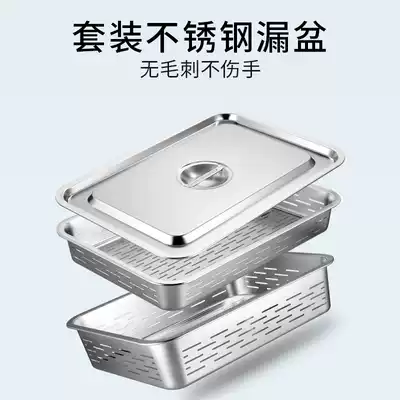 Rectangular stainless steel wash basin drain basket kitchen basin household large drain basin filter basin Commercial Square basin with lid