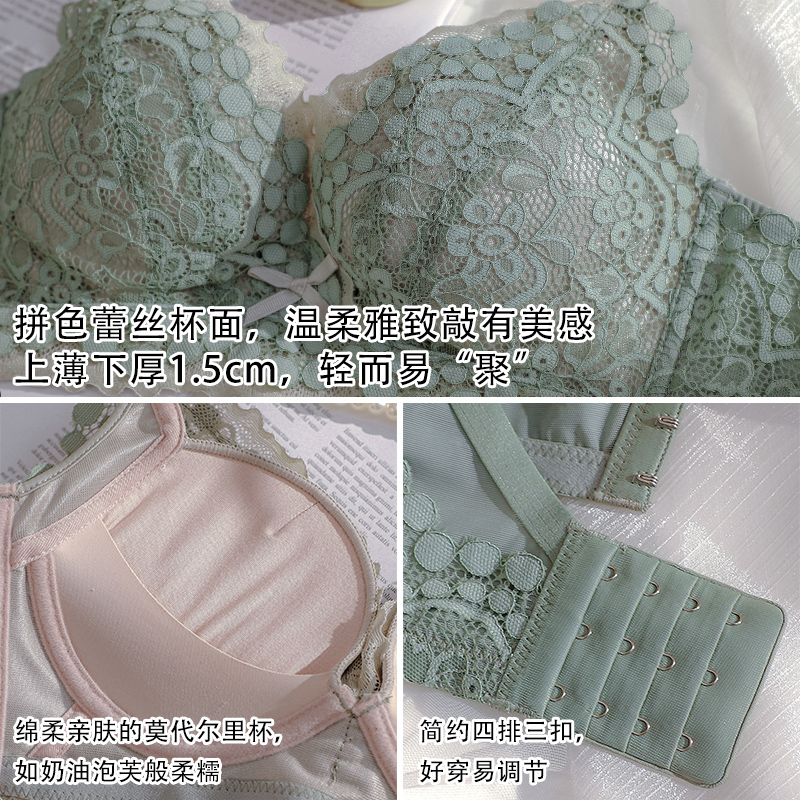 Underwear women's summer small chest gathered flat chest special bra no rim adjustment type sub-breast anti-sagging bra set