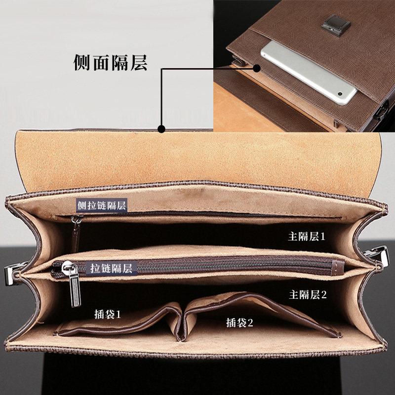 Combination lock briefcase vertical handbag men's business bag hard shell briefcase male genuine leather large capacity leather bag men's bag
