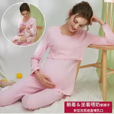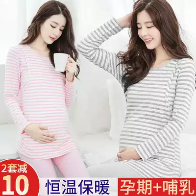 Pregnant women autumn clothes sanitary pants set cotton autumn and winter postpartum breastfeeding autumn clothing thick thermal underwear Moon Clothing