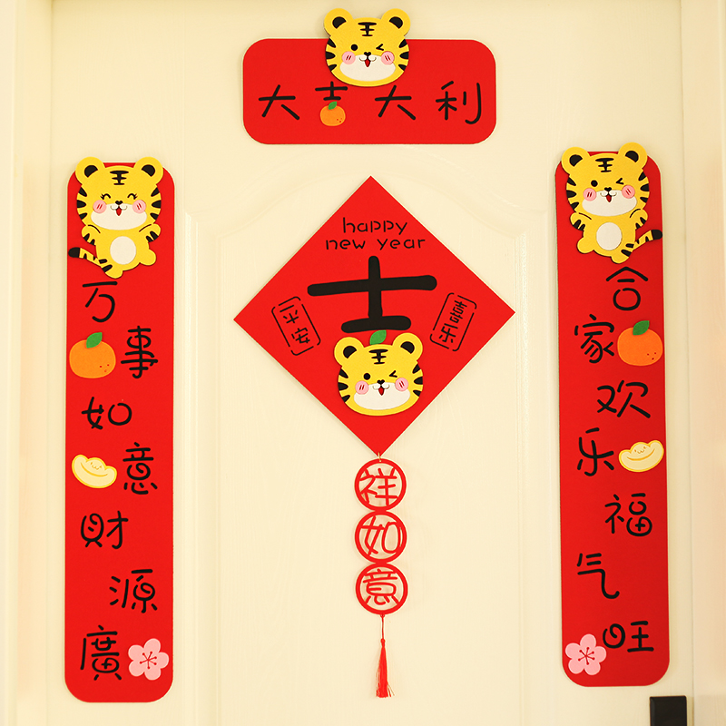 2022 Spring Festival creative couplet year of the tiger three-dimensional cartoon Fu character hand-waving Spring League New Year decoration door stickers