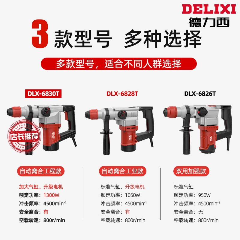 Dresi 1300W electric hammer drill electric pick electric pick electric drill high-power percussion drilling dual-use multifunctional industrial concrete household