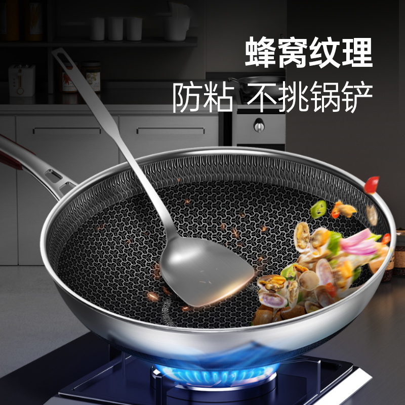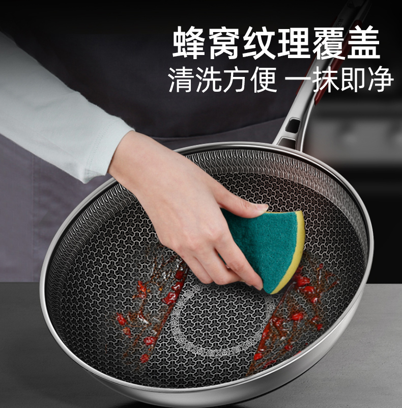 Combach honeycomb antibacterial non-stick wok double sided stainless steel stove wok home induction cooker wok