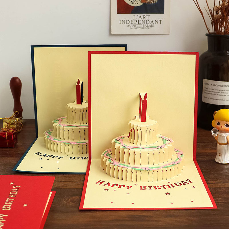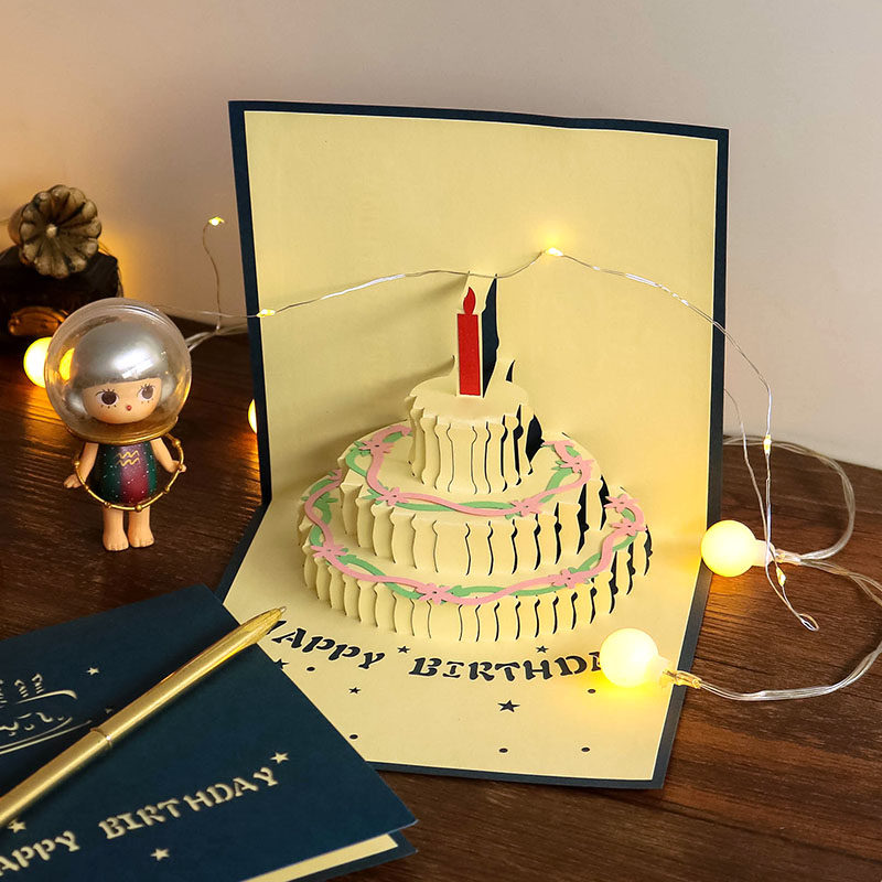 Creative in the girl adorable stereo birthday card 3D cake card postcard girlfriend's birthday small gift