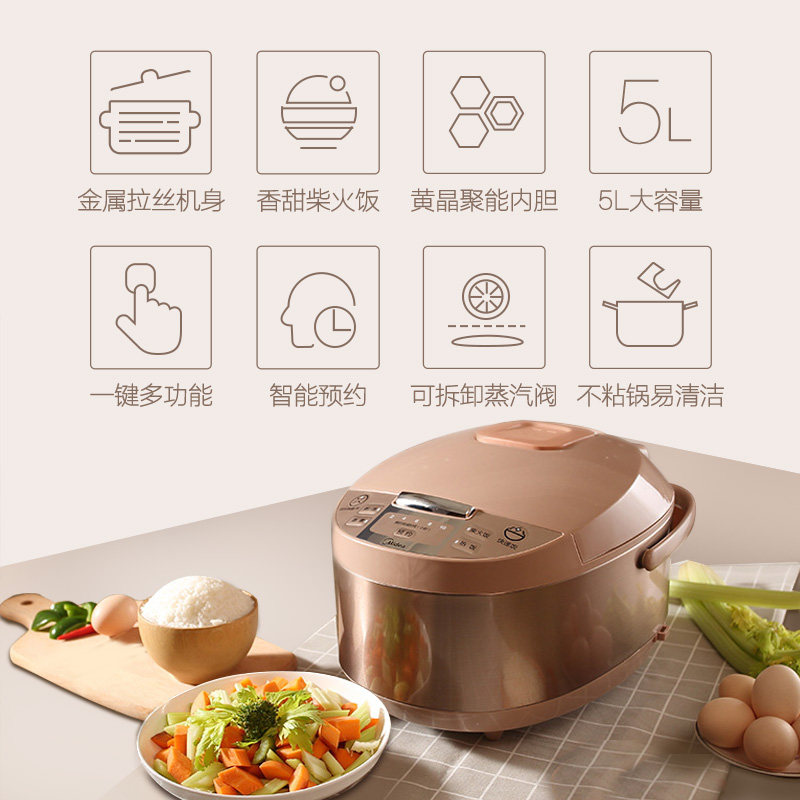 Beauty electric rice cooker Home smart 5L liter large capacity electric cooker small multifunction cooking pot fully automatic dormitory