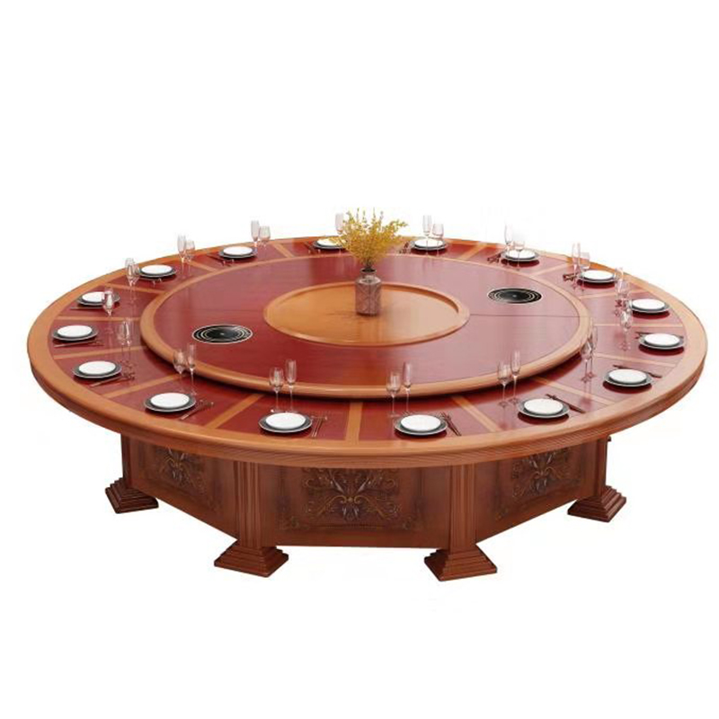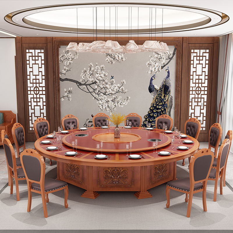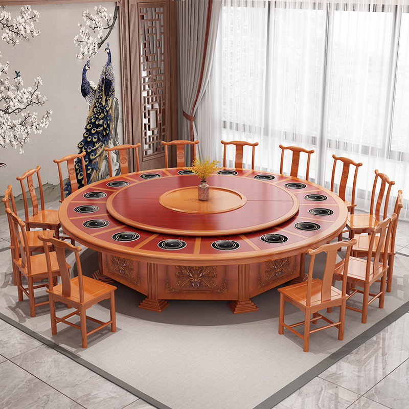 Hotel dining table and chair combination 15 people electric with turntable 20 people hot pot restaurant large round table 3 meters rotating induction cooker