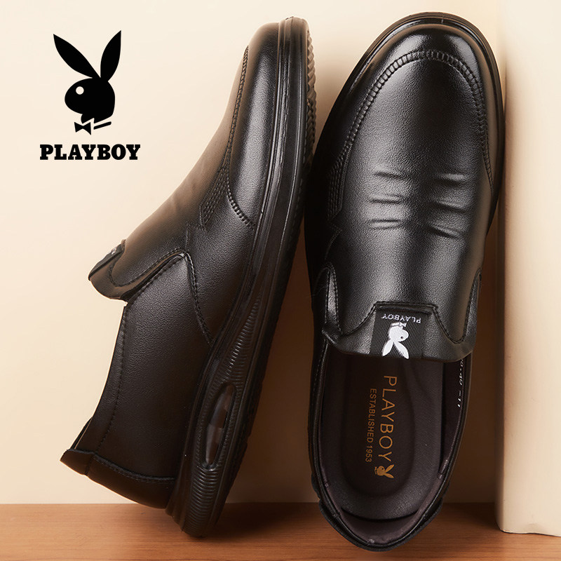 Flowers Playboy Men's Shoes Fall Breathable Casual Business Positive Dress Leather Leather Soft-bottom 100 Hitch Middle-aged Dad Shoes
