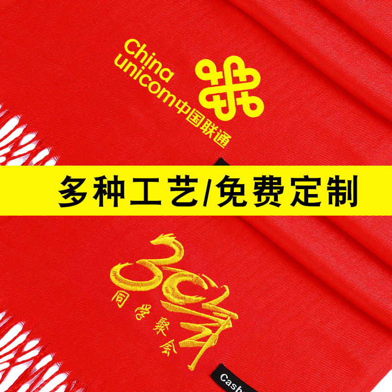 Annual meeting China red scarf custom logo embroidery imitation cashmere Classmate party Big red New Year's greeting printed word gift