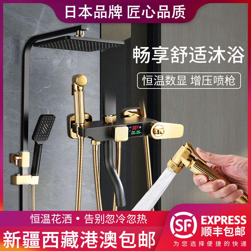 Japanese lifting shower home household Nordic constant temperature bathroom all copper wall-mounted shower faucet set