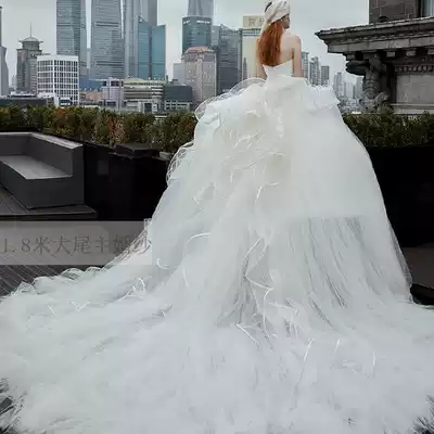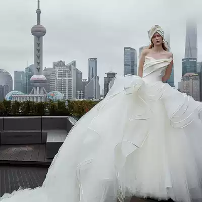 2021 New temperament thin bride chest master wedding dress Super fairy dream luxury high end big tailing simple