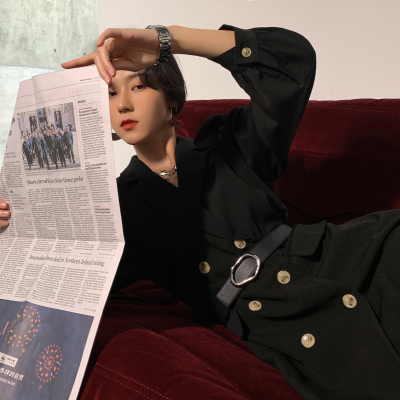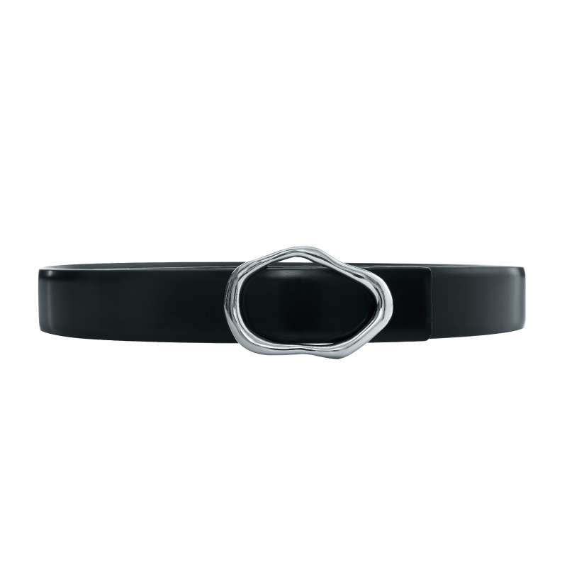 LUCIA TACCI (designer original new product) black coffee two sides calfskin Sichuan Fritillaria buckle belt belt female
