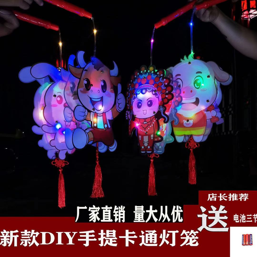 New portable lantern DIY glowing cartoon square hot selling street stall children's toy flash projection New Year's lantern