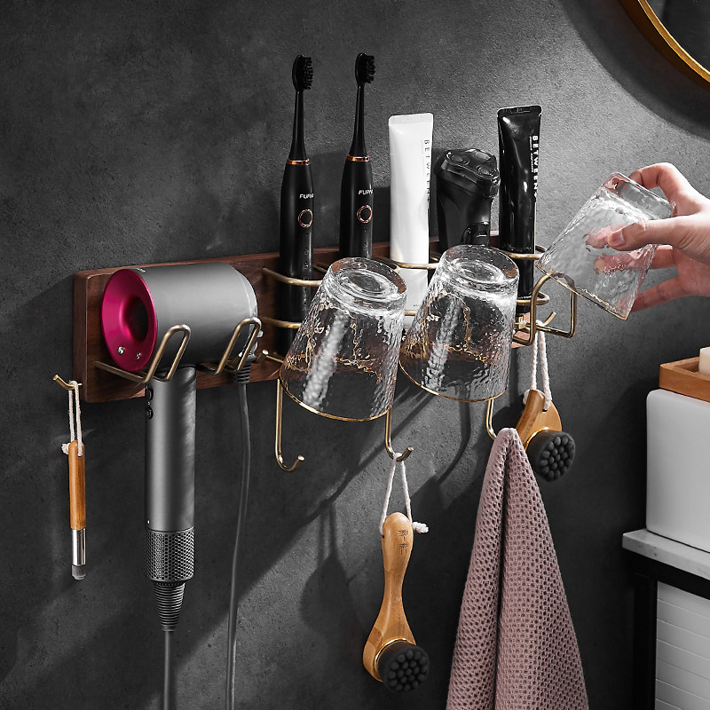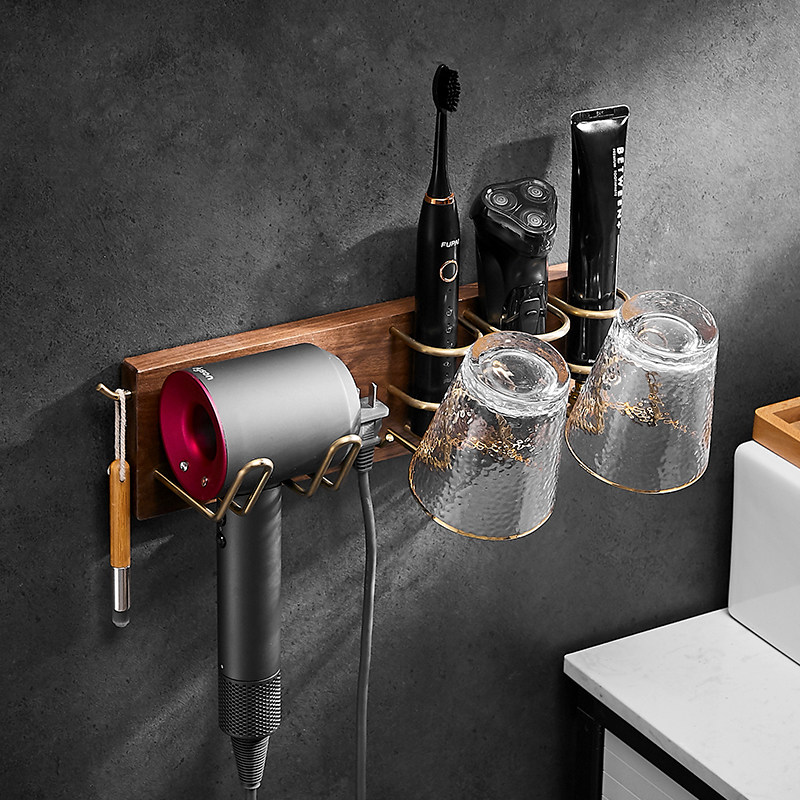Solid wood hair dryer rack dressing room hairdryer hairdryer hold layer rack wall hanging no punch universal hair rack
