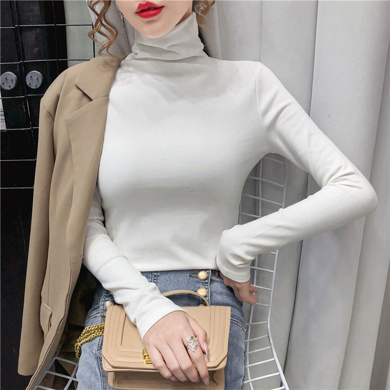 2022 spring and autumn new high-neck autumn and winter models all-match black plus velvet bottoming shirt T-shirt women's German velvet thickened and warm