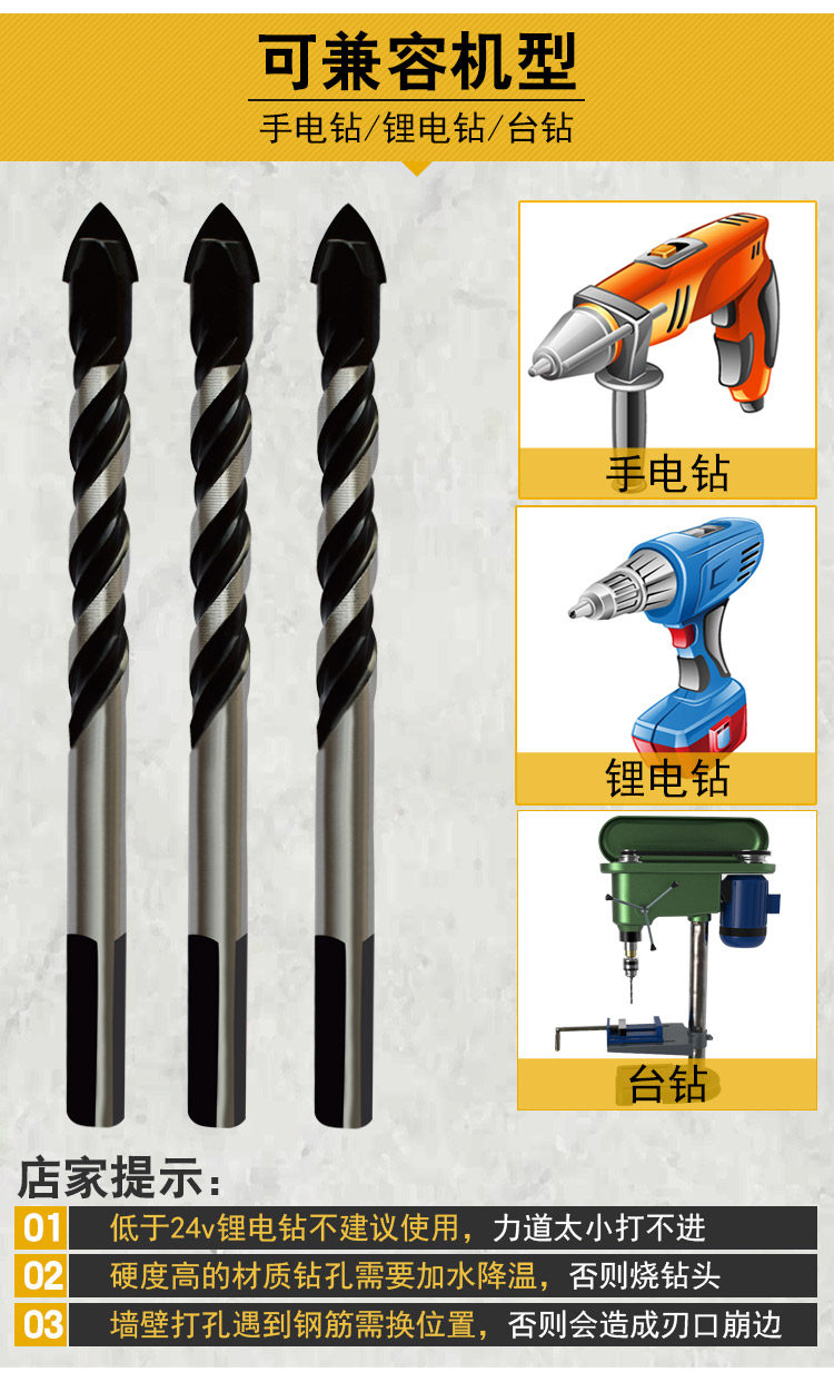 Tile Drill Bit Glass Ceramic Cement Multifunction cement Drill Punch Electric Drill 6mm Triangle drill