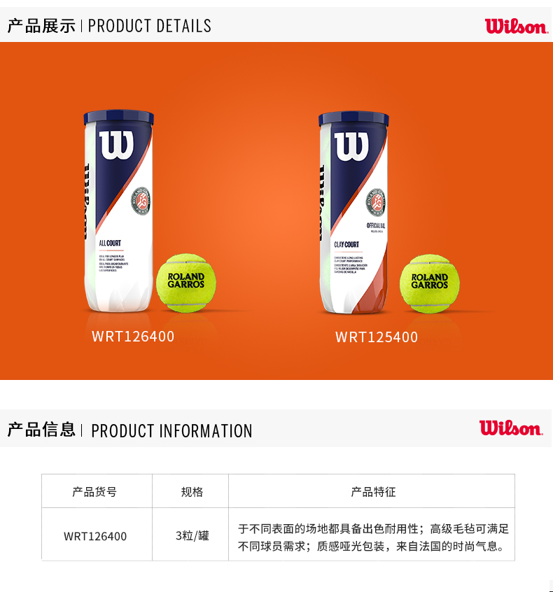 Wilson Wilson Wilson 2020 French net full field professional ball 3 canned Tennis Tennis