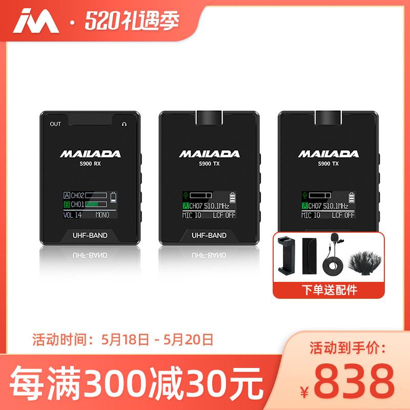 Mclarda S900 Mobile Phone Computer Single Eye Camera Collar Clip Microphone Wireless Small Bee Microphone Live Coverage Audio Recording Device Full Set Bluetooth Mike Professional One Tug 2