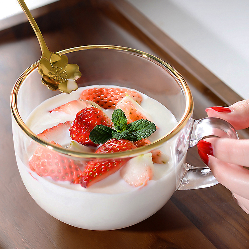 Oat Tea Color Glass Bowl Breakfast Cup Japan Style Noodles Bowl Home Han Prints Wind Wheat Sheet Handle Bowl Milk Cup