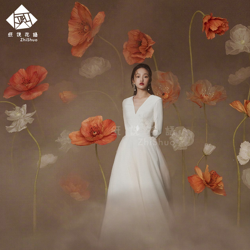 Large wedding silk mesh flower handmade three-dimensional dyeing flower wedding magazine event scene layout human fairy style