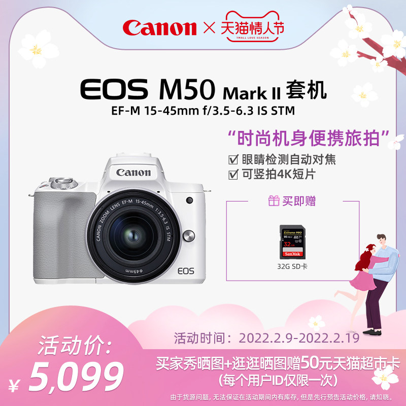 Officially standard EOS M50 Mark II Kit EF-M 15-45 f 3.5-6.3 IS STM EOS M50 Mark II Body +EF-M 11-22mm f 4-5.6 IS STM EOS M50 Mark II EF-M 15-45mm Kit +EF-M 11-22mm f 4-5.6 IS STM EOS M50 Mark II Body +EF-M 11-22mm f 4-5.6 IS STM+ tripod handle HG-100TBR