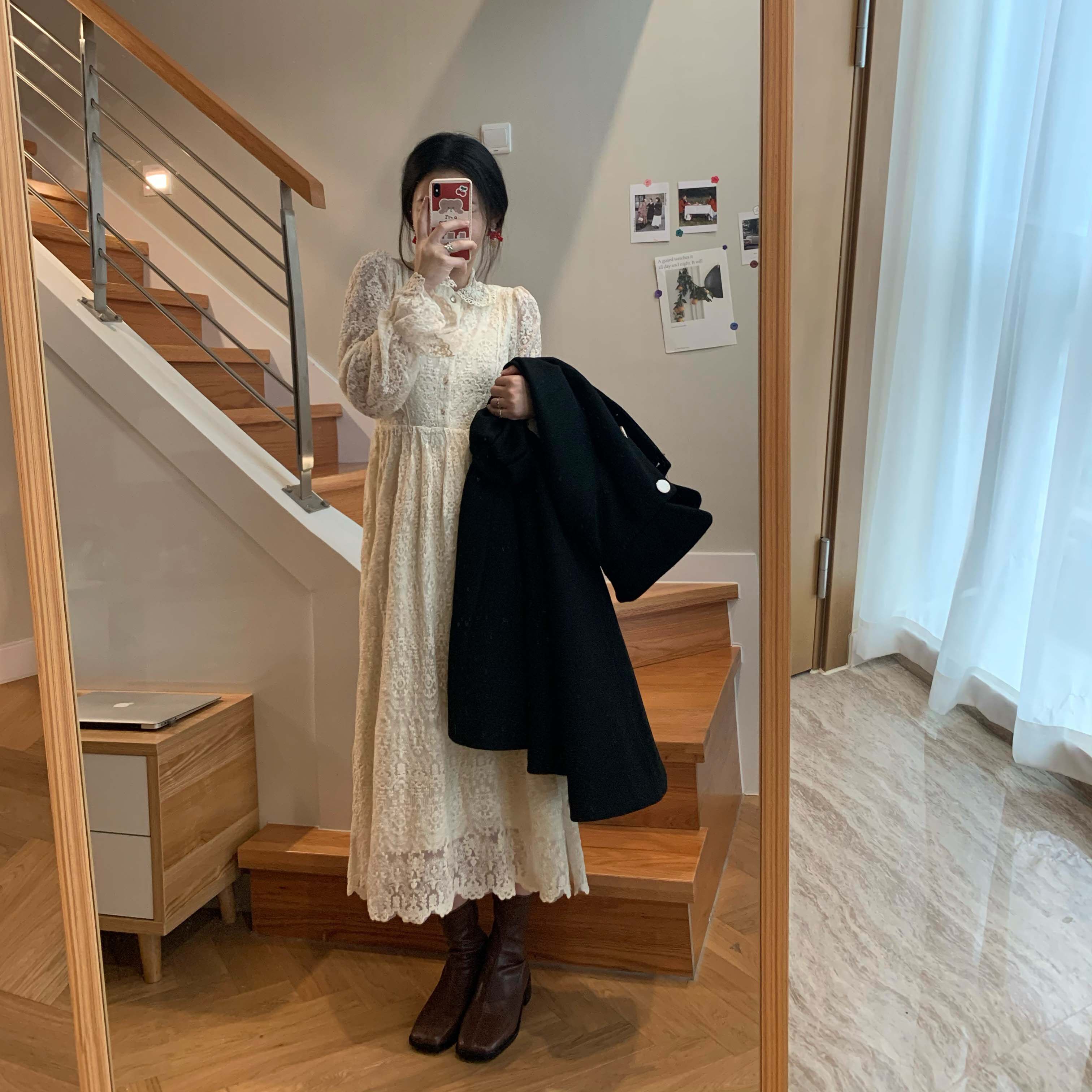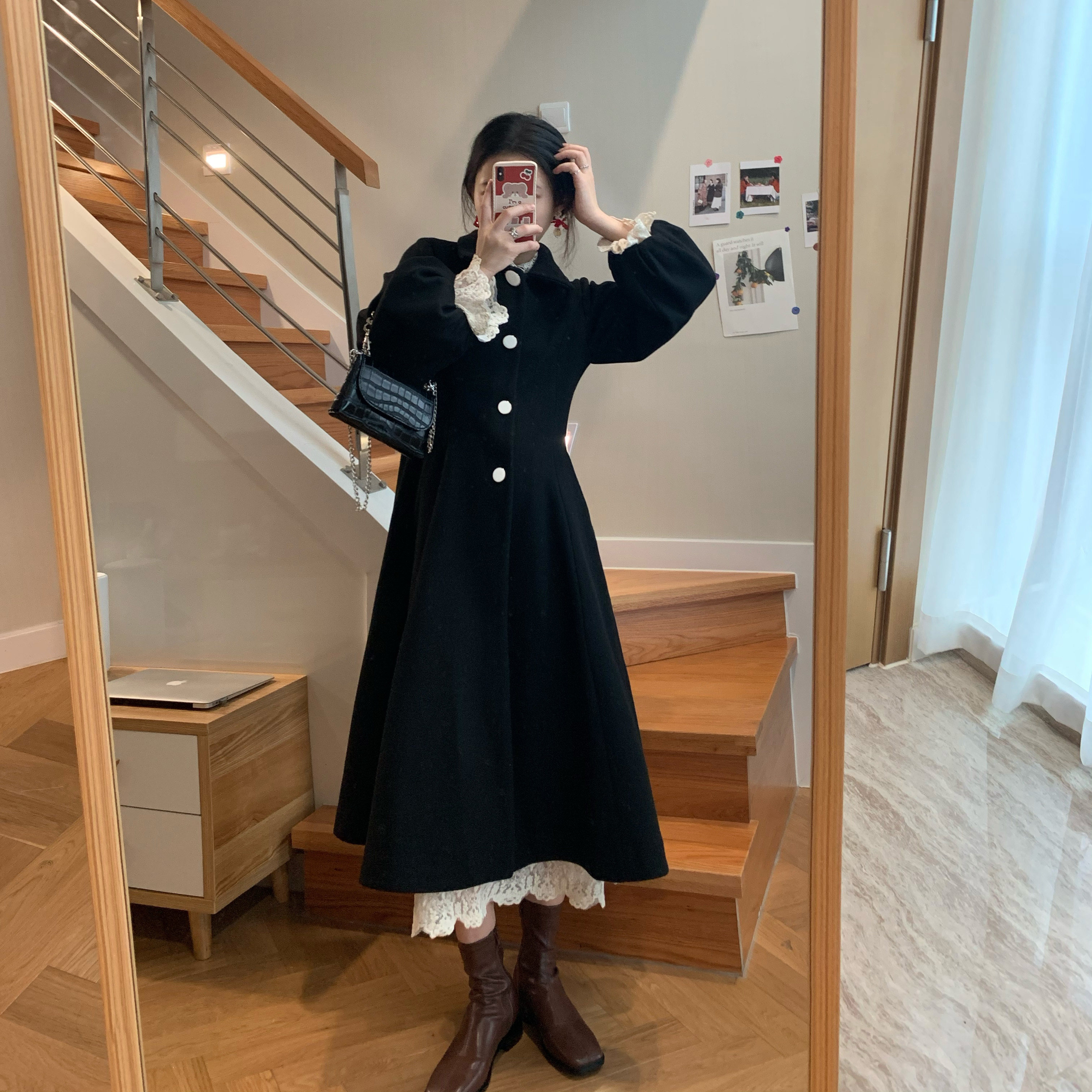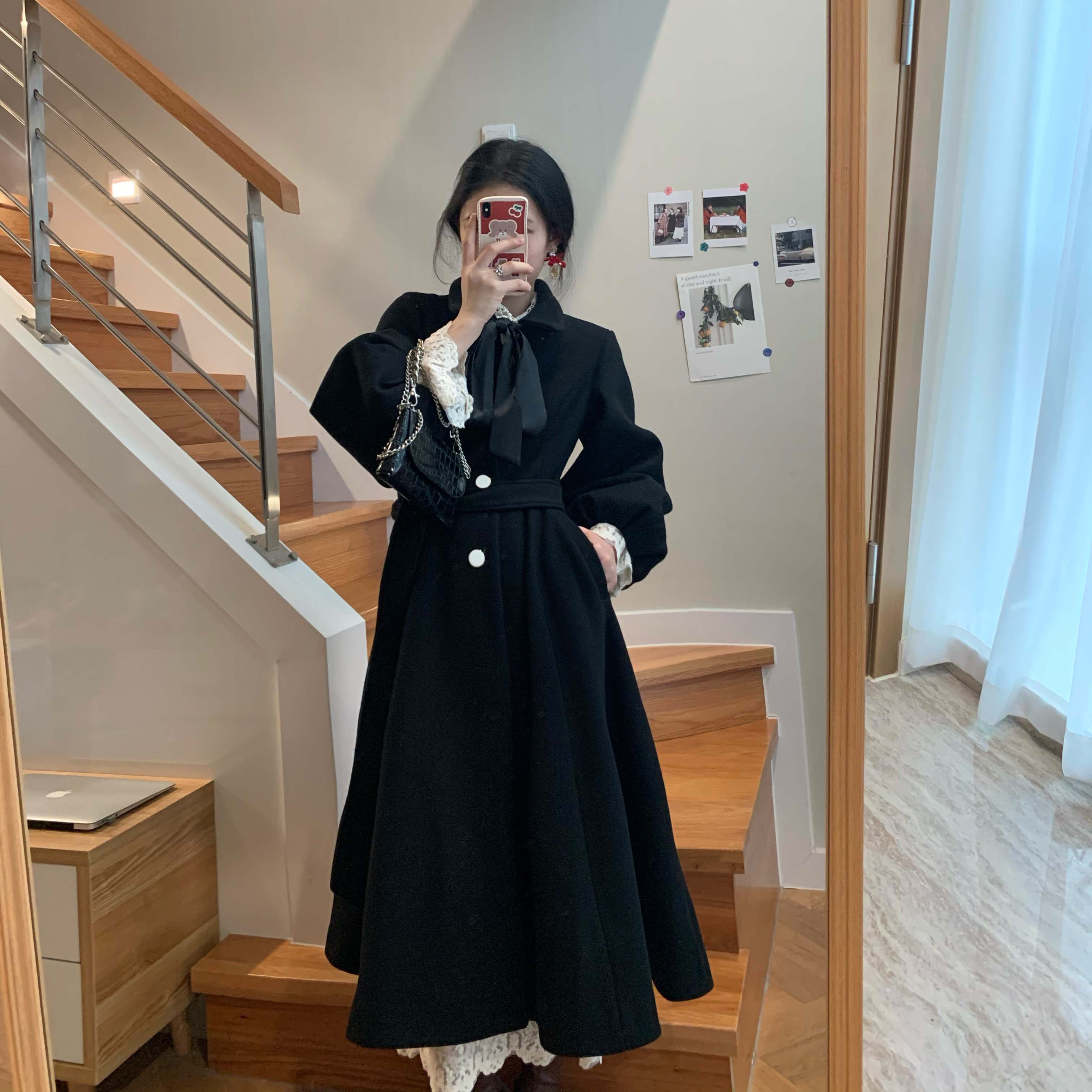 2021 New small balsamic wind Black French style retro coat lace with slimmer French style retro skirt two-piece suit woman
