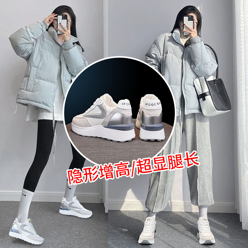 Inside heightening Aagan shoes Children ins Chains 2022 new 100 lap net red bursting casual sports genuine leather old daddy shoes