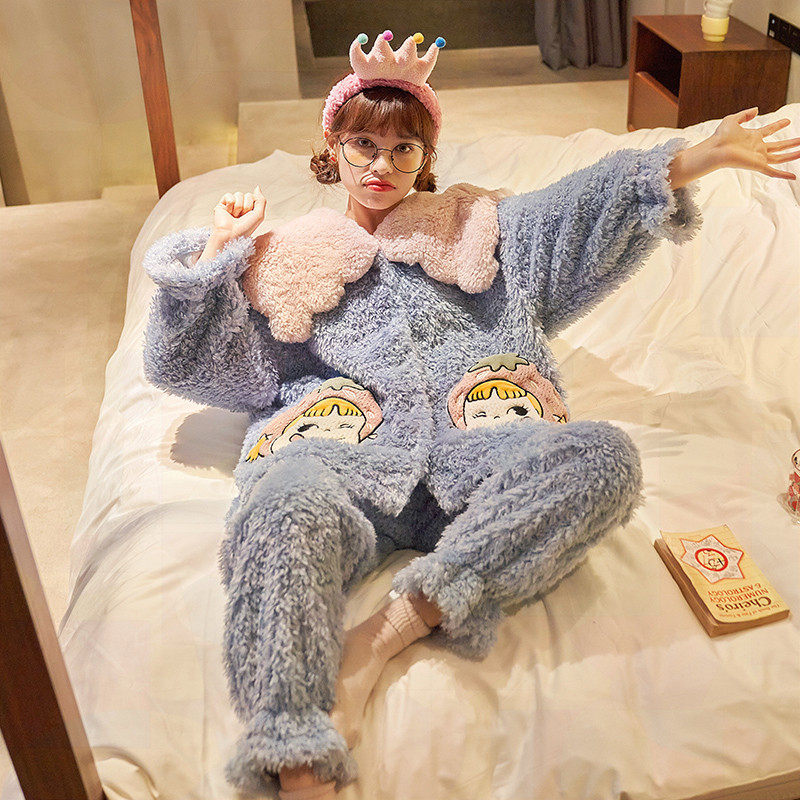 Winter pajamas women's 2022 new coral fleece thickened and fluffy autumn and winter cute outer wear home clothes