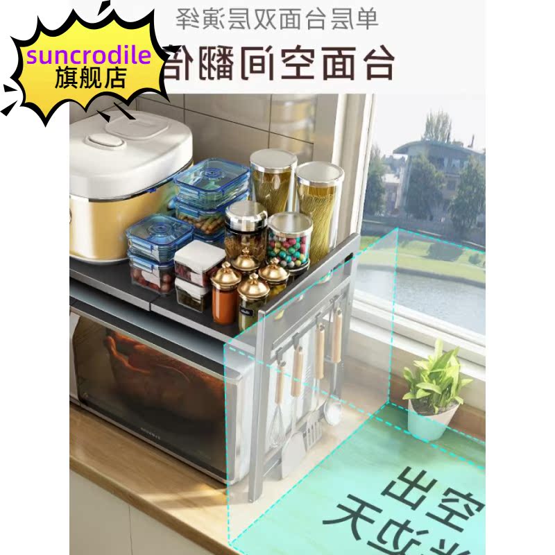 Kitchen multi-function microwave oven integrated telescopic storage shelf double storage countertop home oven rice cooker shelf