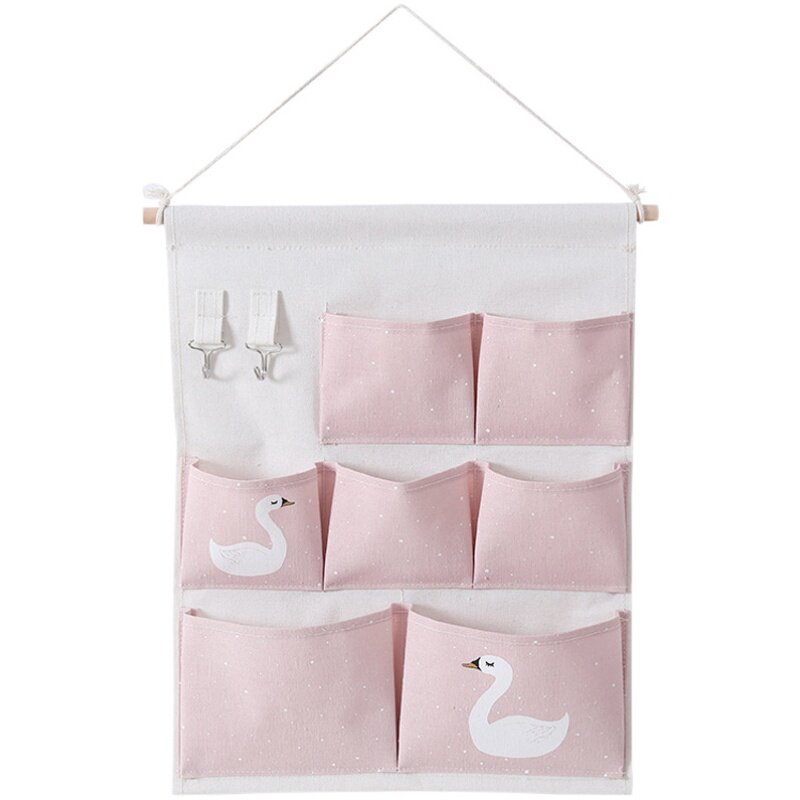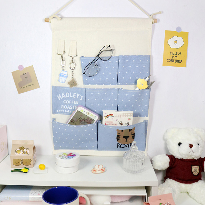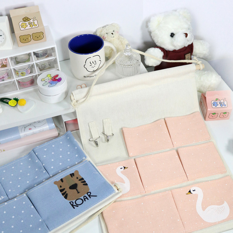 Hanging bag orange (with iron hook type sticky hook) hanging bag blue (with iron hook type sticky hook) hanging bag pink (with iron hook type sticky hook) cotton and linen three pockets (with iron hook type sticky hook)