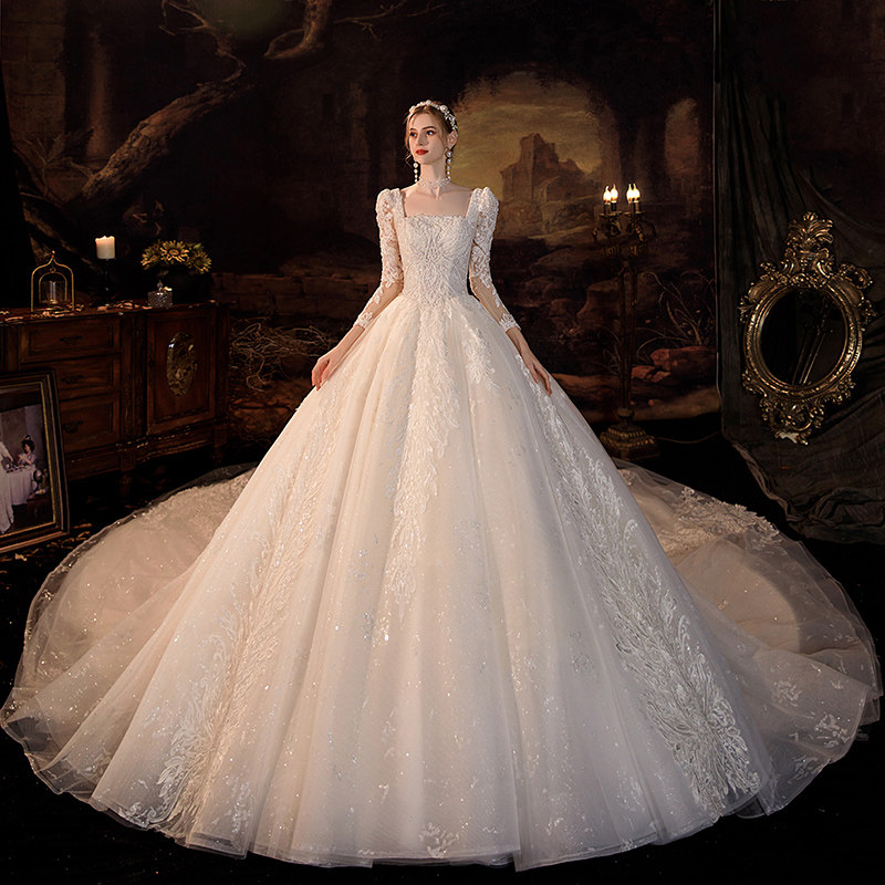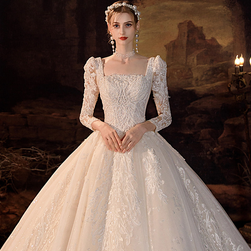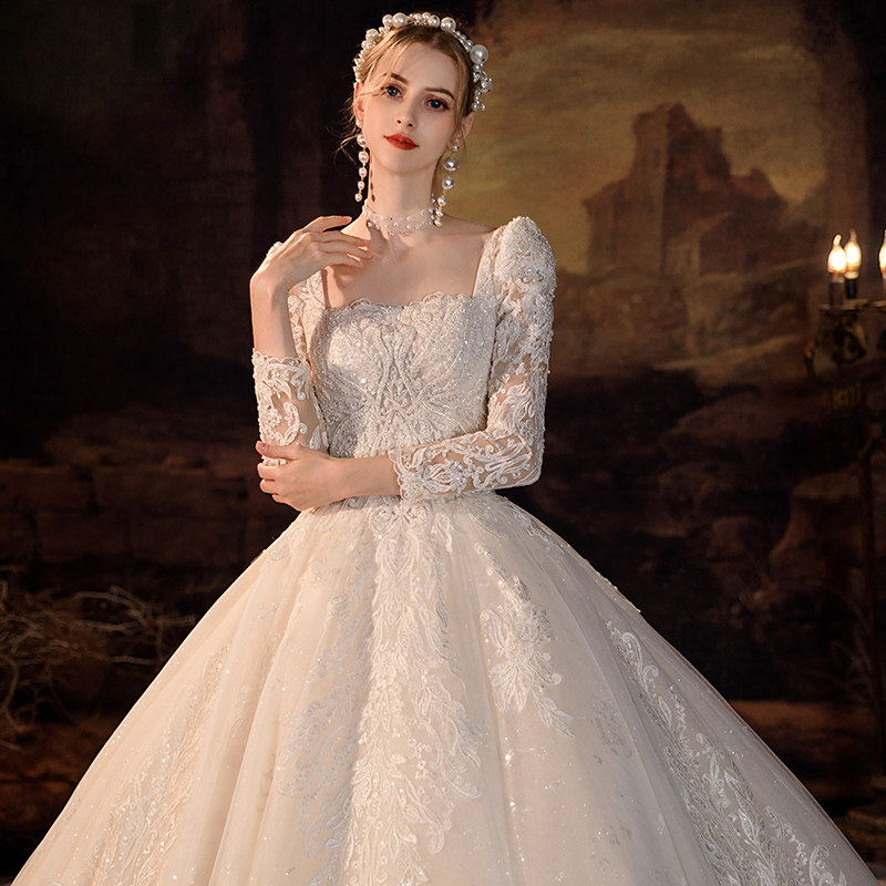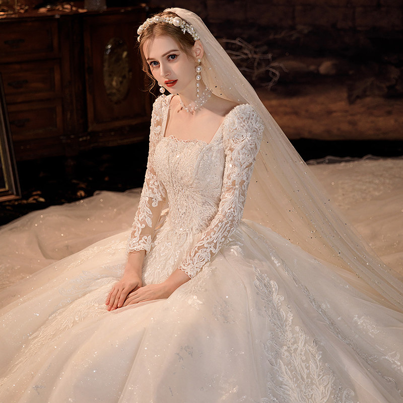 Long sleeve main wedding dress 2021 New Bride wedding little man French advanced sense out of the yarn winter winter