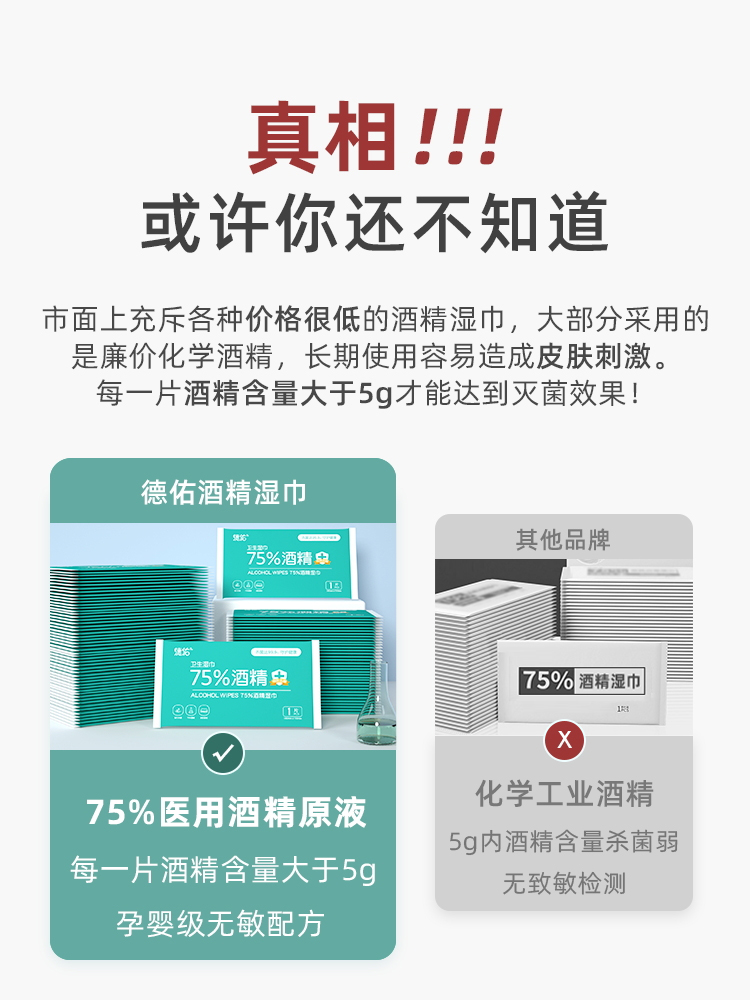 Desyou 75 Degrees Alcohol Disinfection Wet Towels Single Sheet Independent Packaging Student Child Sterilised Small Bag Portable Wet Paper Towels