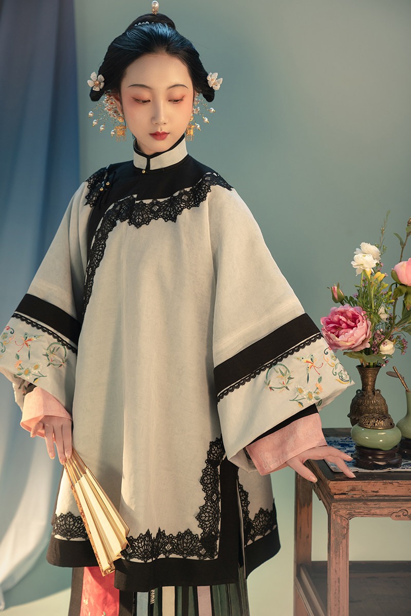 Old silver middle coat, green langan skirt, moonlight phoenix skirt