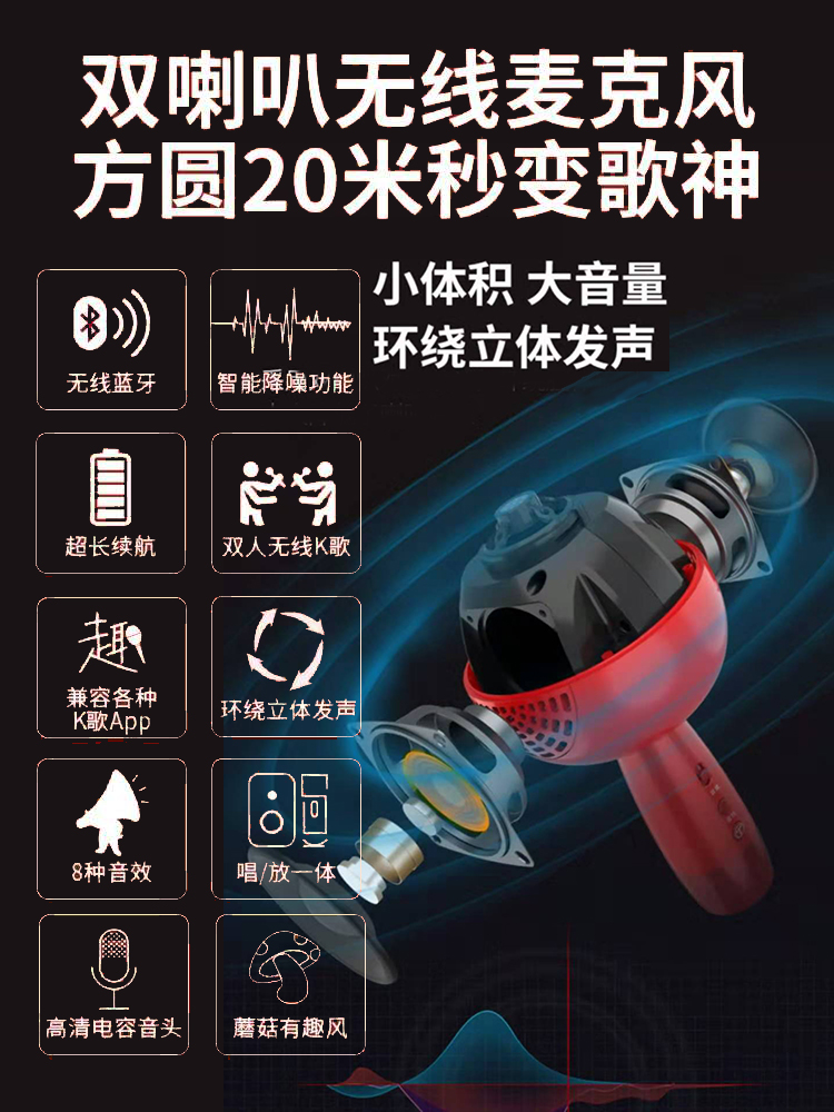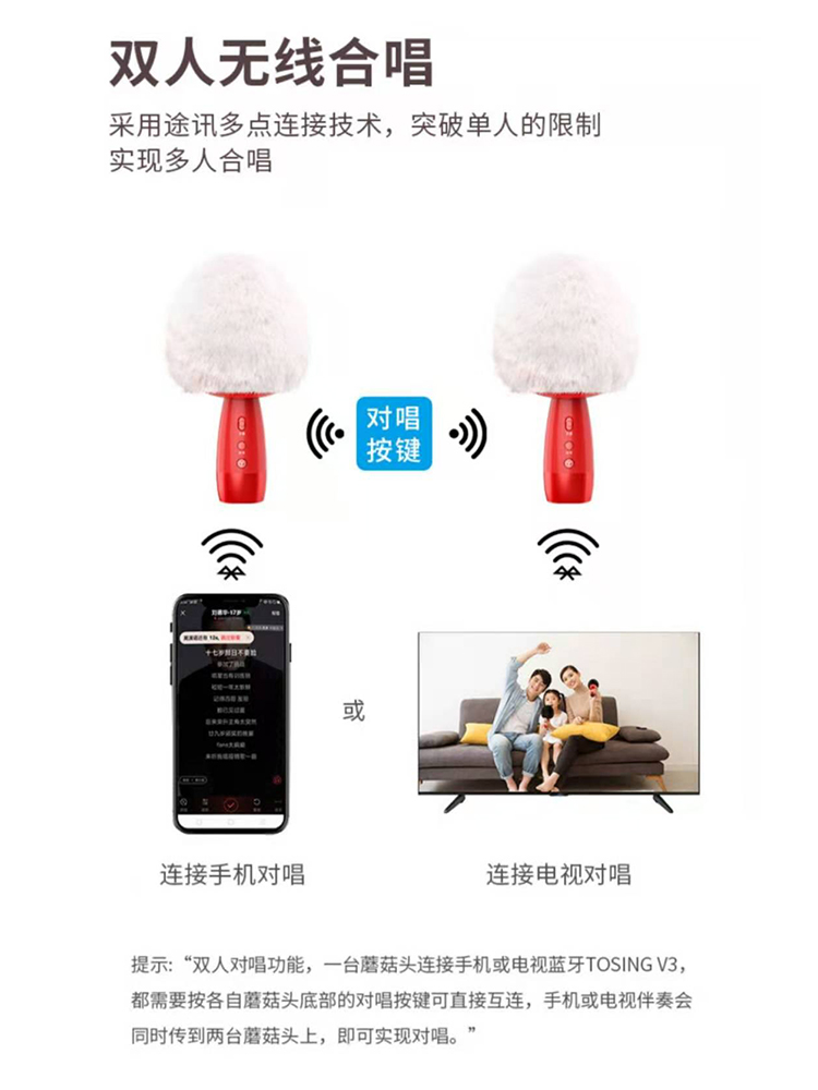 Tuxun V3 national K song mushroom head microphone mobile phone TV double chorus microphone audio integrated K song treasure