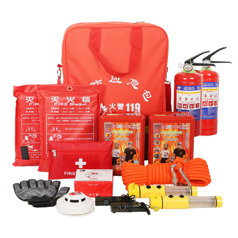 Hinda Civil Defence Escape Bag Fire Extinguishers Dry Powder Home Escape Rope Fire Fighting Blanket Anti-Gas Mask Veil Smoke Sensation