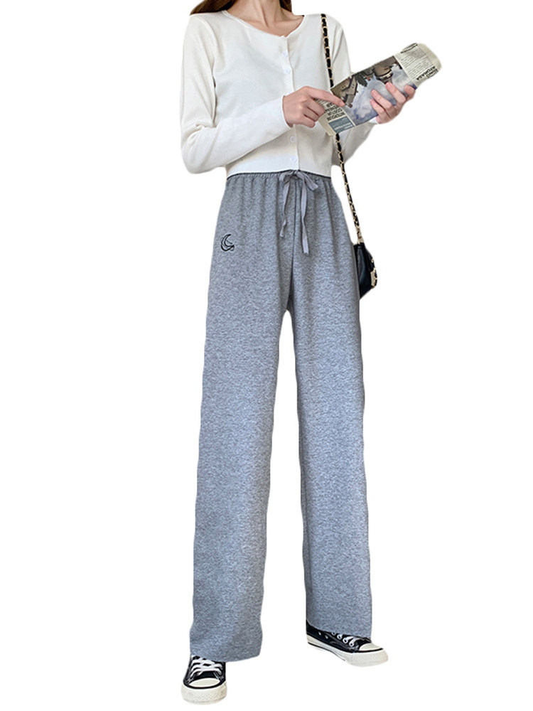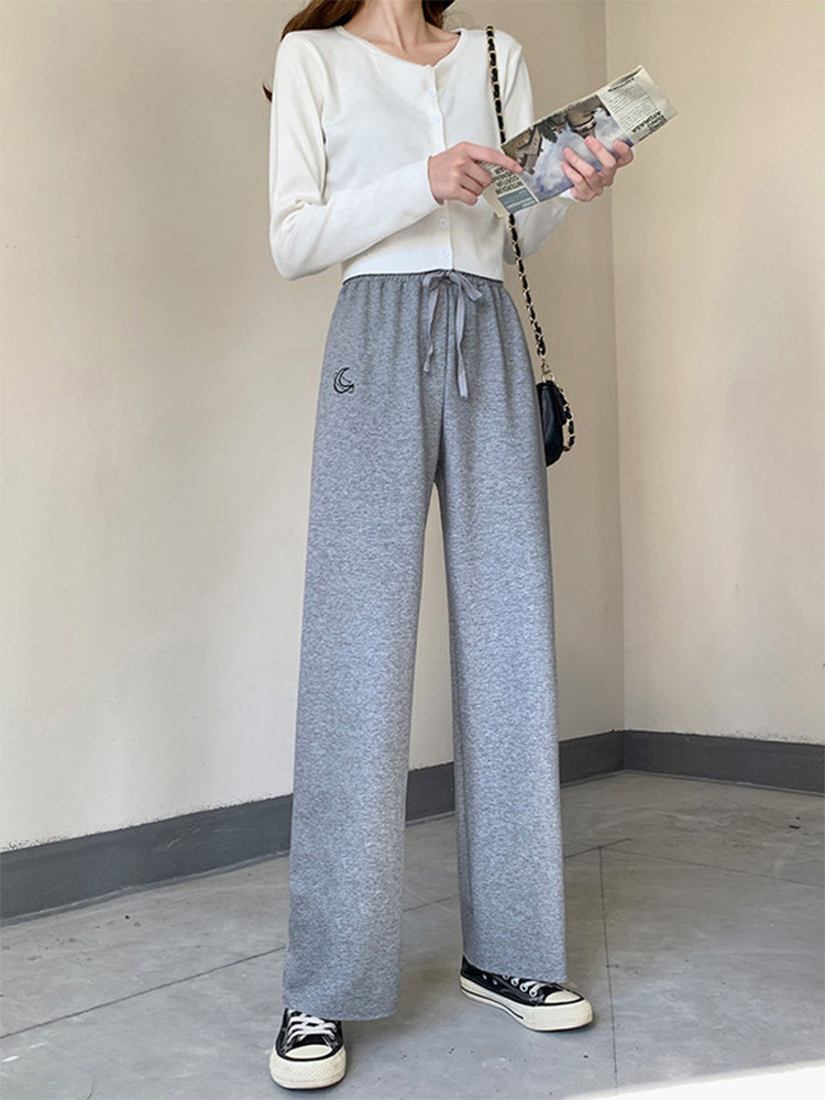 Tide brand high waist sports pants women's summer New loose straight wide pants high waist hanging feeling thin casual thick cotton pants
